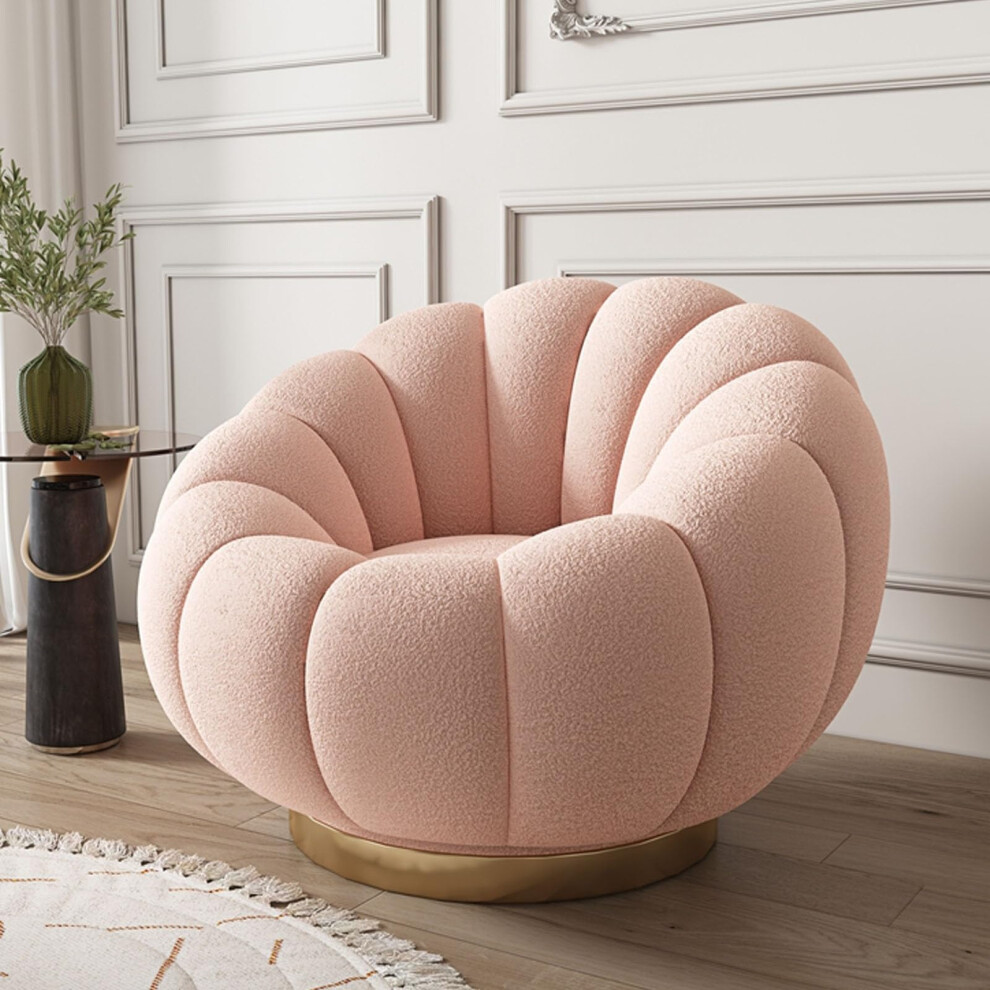 poneeridea 39" Pink Swivel Accent Chair,Big Comfy Reading Swivel Chair with Single Large Throw Pillow,Round Oversized Chairs with Wide Armrests,Upholstered Armchair for Living Room and Bedroom