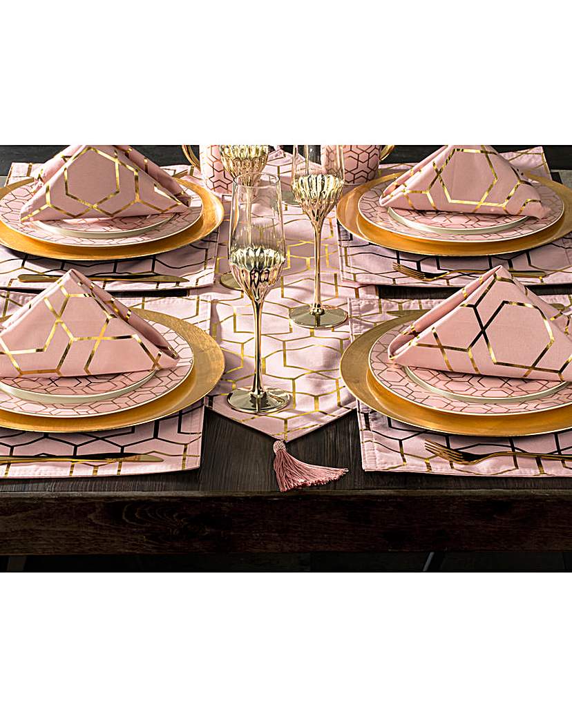 Waterside 9 PC Pink Geo Table Runner Set Gold - Waterside