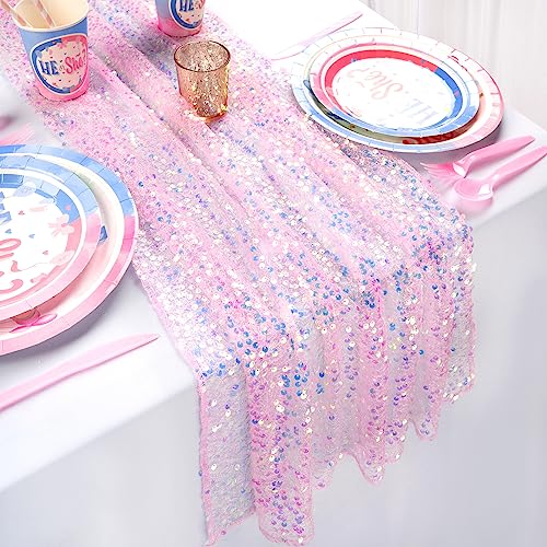 Pink Table Runner Iridescent Sequin Table Runners Glitter Table Fabric 25X120 inch for Baby Shower Wedding Birthday Party Ceremony Table Decorations