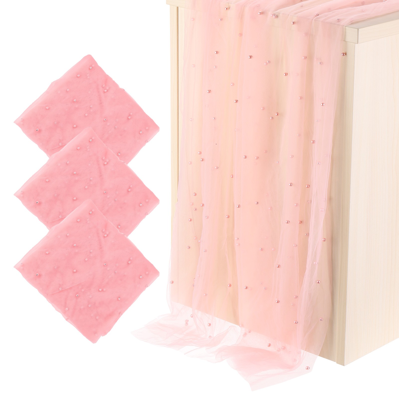 3Pcs Pink Table Runner 63 x 120 Inch Pearl Table Cloth Wedding Decor
