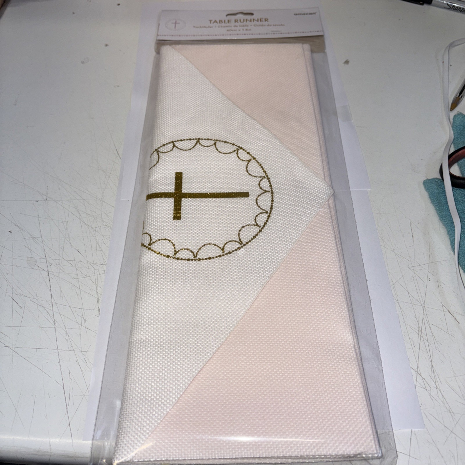 Pink Botanical Cross Table Runner | Girls Christening Baptism Communion 1.8m