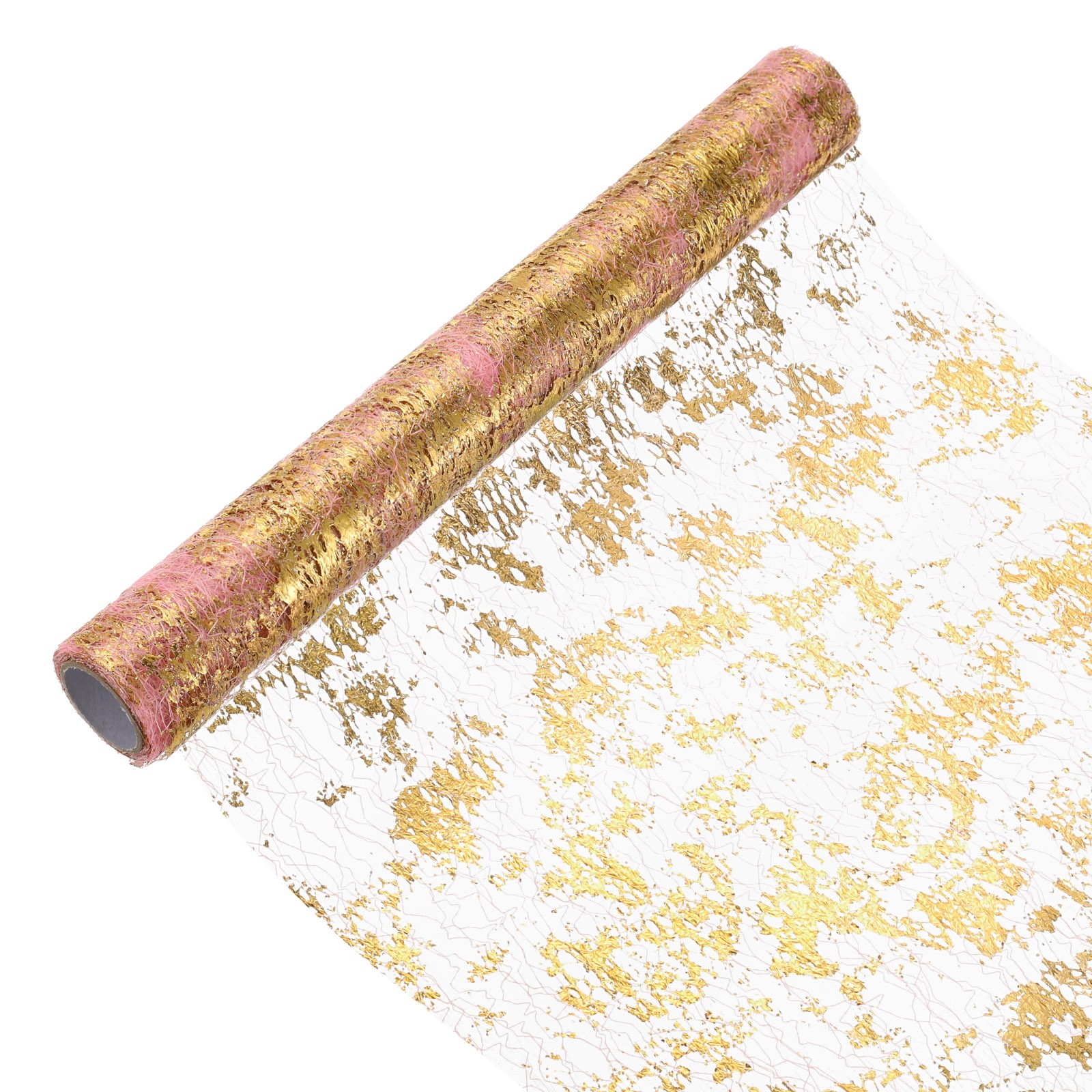 Gold Pink Table Runner Roll 11.4" x 108" Sequin Foil Metallic Mesh Table Runner