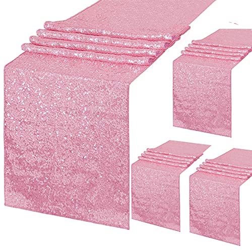B-COOL Fuchsia Pink Sequin Table Runner 4Pack 12x72 Inch Glitter Table Runner for New Year Party Baby Shower Holiday Candy Bridal Shower Ceremony Christmas Table Decorations