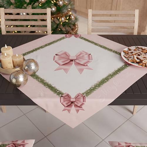 PETTI Artigiani Italiani - Christmas Centerpiece, Christmas Kitchen Table Centerpiece, 90x90 cm Centerpiece Runner, Pink Feather Bow Centerpiece, 100% Made in Italy