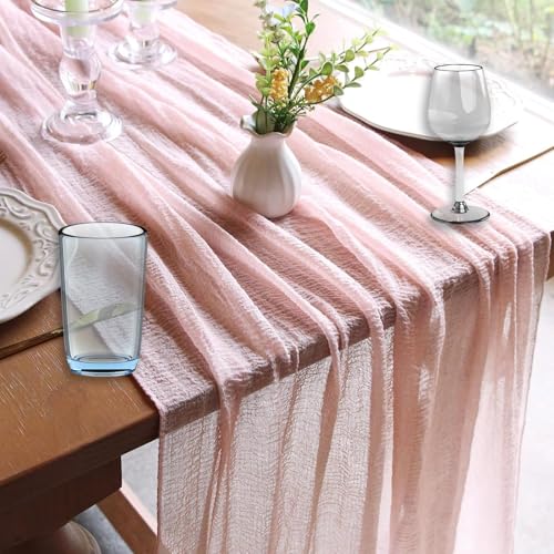 Sioloc 1 Pack Light Pink Cheesecloth Table Runner Summer Decor 90cmX300cm Boho Gauze Runner for Fall Autumn Decor Wedding Party Baby Bridal Shower Birthday Table Decorations