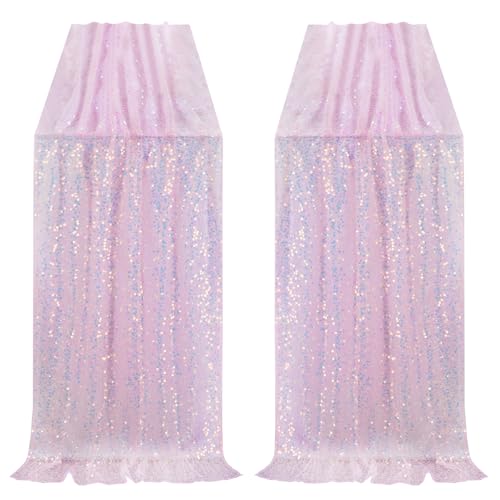 10ft Iridescent Pink Table Runner 2pcs 27X120inch Mermaid Sequin Table Runners for Valentine's Day Girls Mermaid Baby Shower Birthday Party Wedding