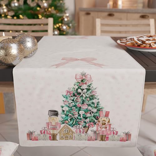 PETTI Artigiani Italiani - Christmas Table Runner, Kitchen Runner 140x40 cm, Elegant Pink Nutcracker Christmas Table Runner, 100% Made in Italy