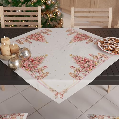 PETTI Artigiani Italiani - Christmas Centerpiece, Christmas Kitchen Table Centerpiece, 90x90 cm Centerpiece Runner, Pink Nutcracker Centerpiece, 100% Made in Italy