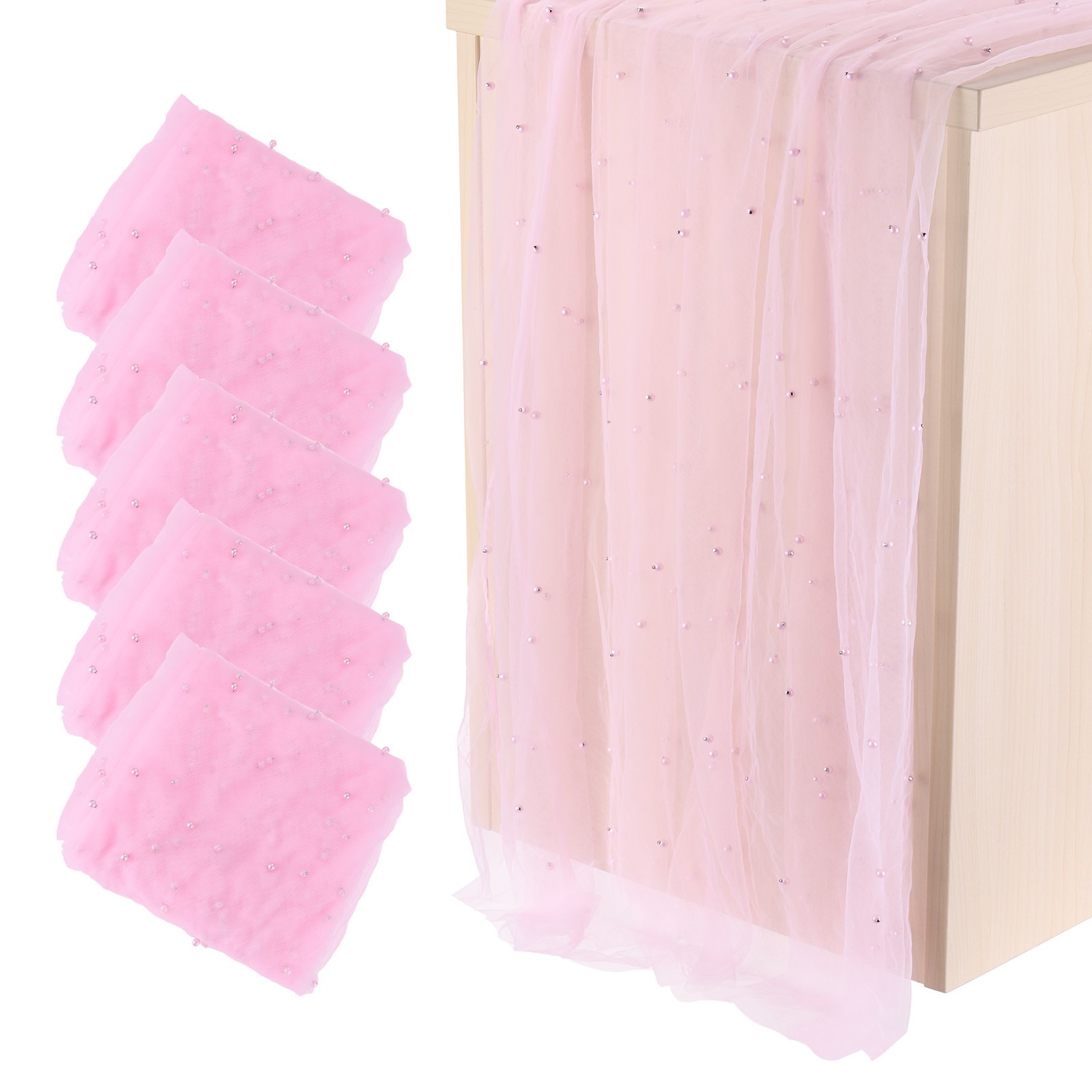 5Pcs Pink Table Runner 63 x 120 Inch Pearl Table Cloth Wedding Decor