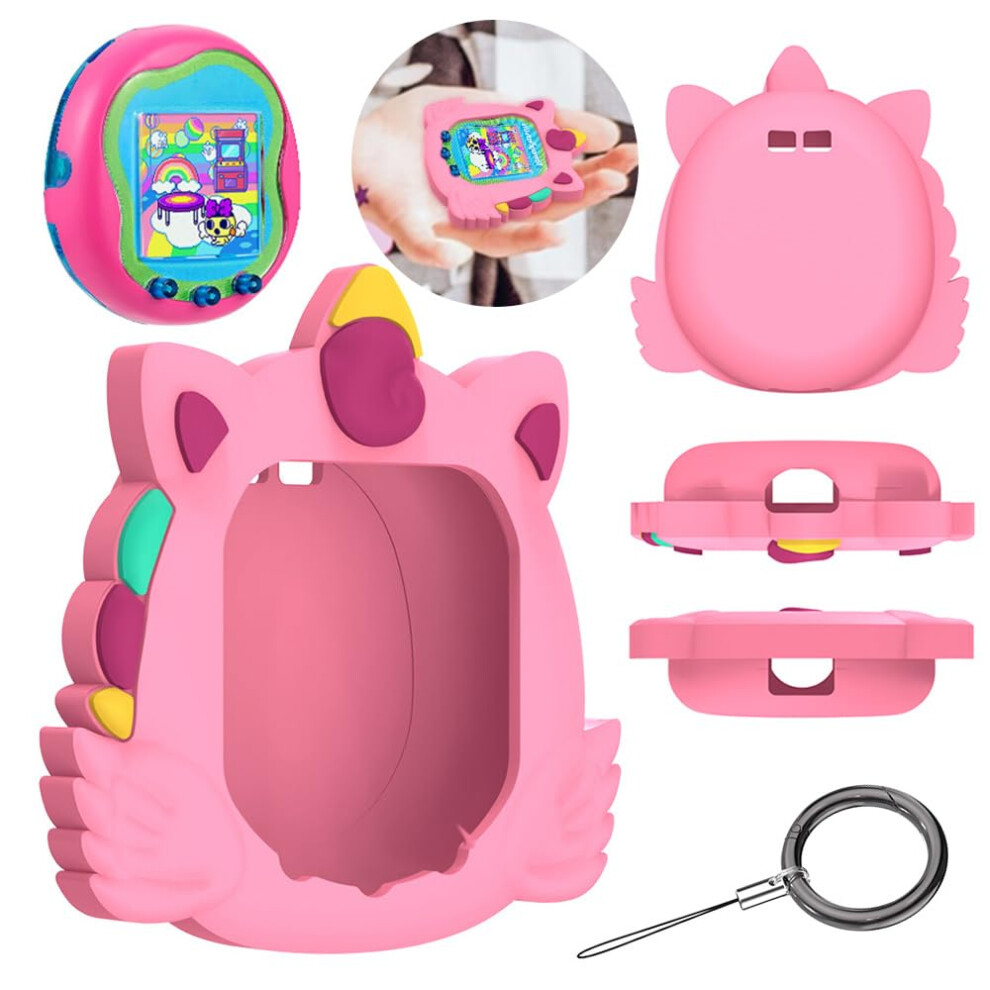 toergy Silicone Case for Tamagotchi Paradise - Soft Protective Cover with lanyard, Comfortable, Portable Anti-Scratch Skin for Pet Game Machine,Pink