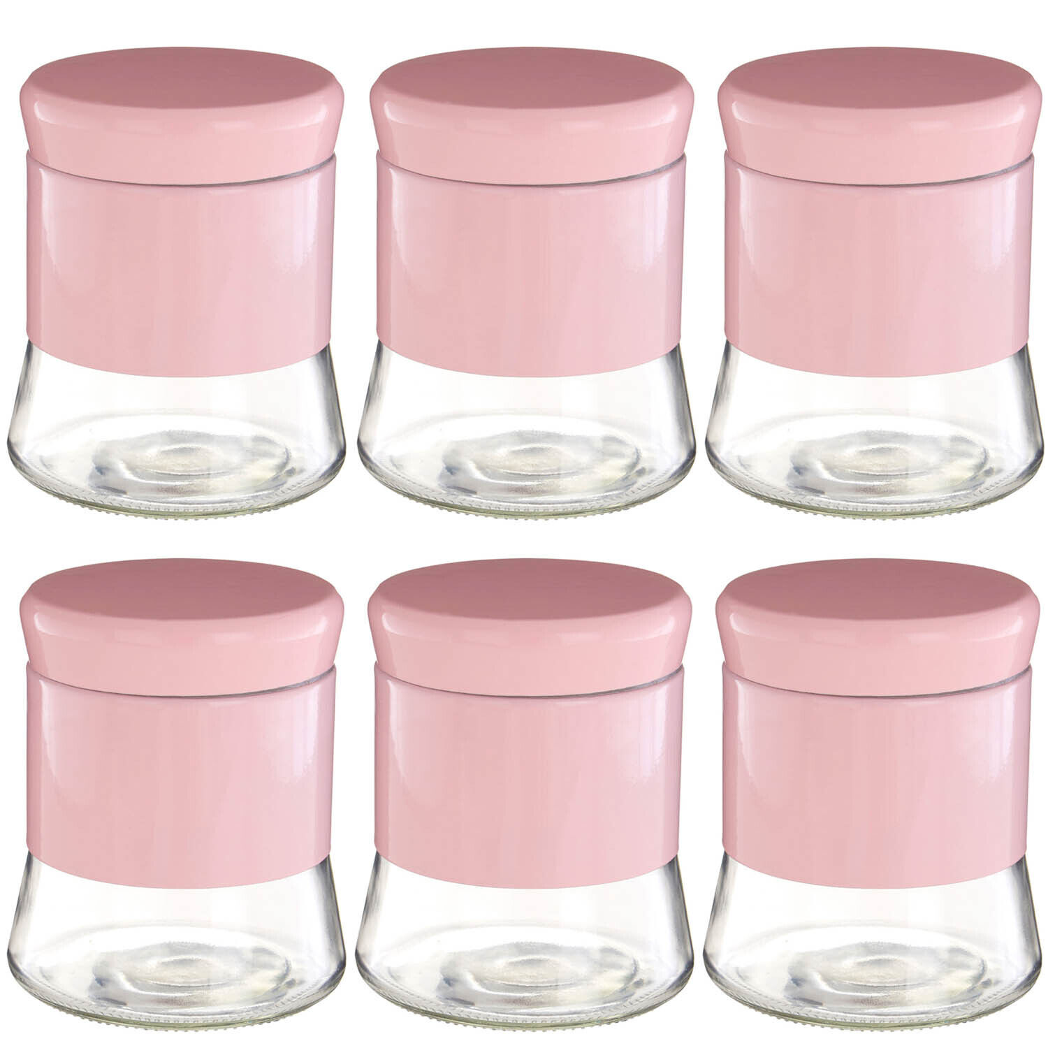 Set Of 6 800ml Pink Stainless Steel Glass Coffee Sugar Tea Canister Storage Jar