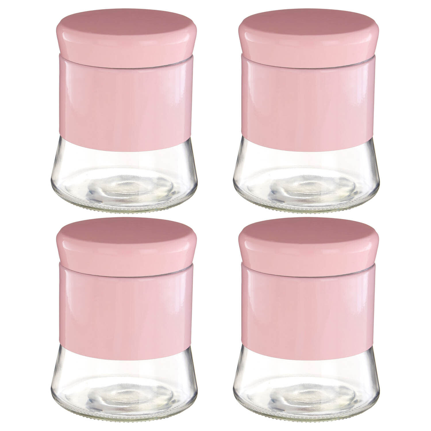 Set Of 4 800ml Pink Stainless Steel Glass Coffee Sugar Tea Canister Storage Jar