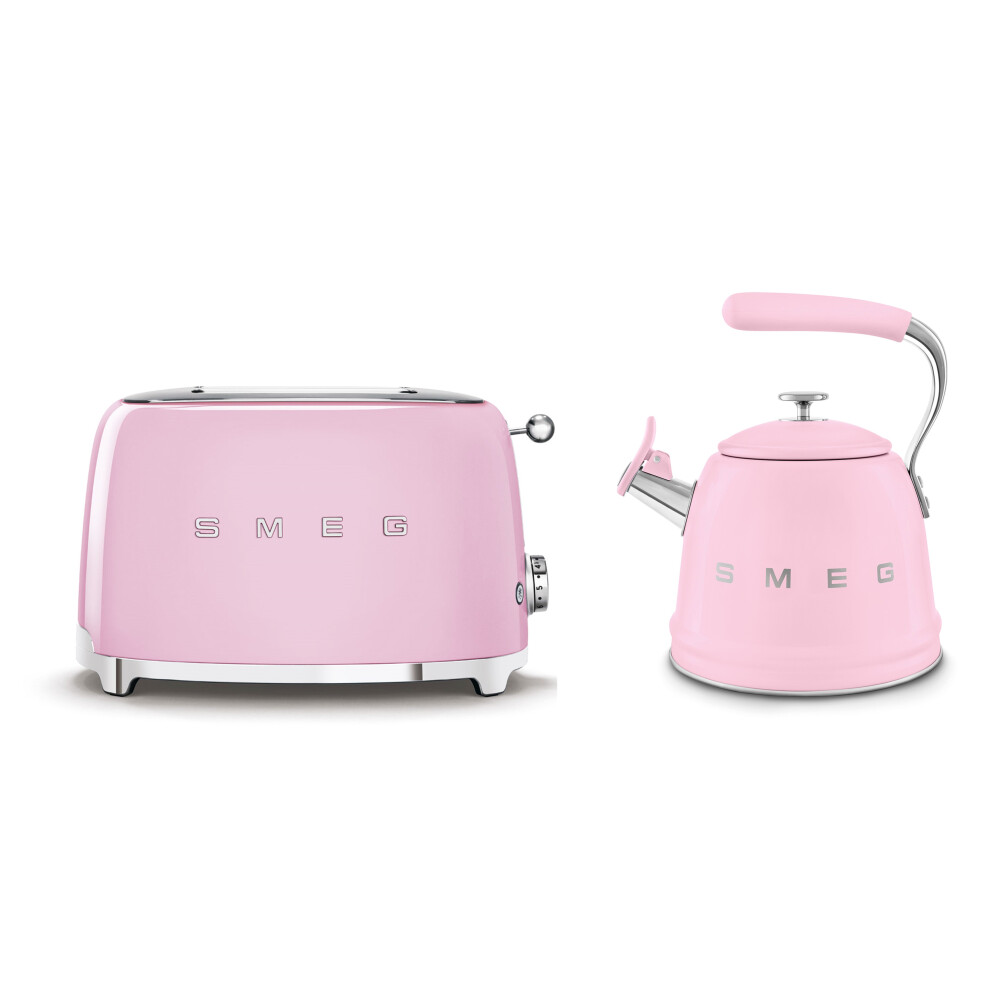 (Pink) Smeg Retro Bundle | WKF01 Whistling Stovetop Kettle & TSF01 2-Slice Toaster Set