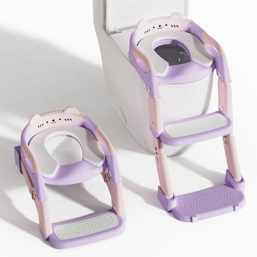 Potty Training Toddler Toilet Seat,Upgrade 3 in 1 Steps Stool,Multi-Functional Splash-Proof Guard,Foldable for Kids Boys Girls,Adjustable Toilet seat Toddler in Bathroom(Pink-Purple)