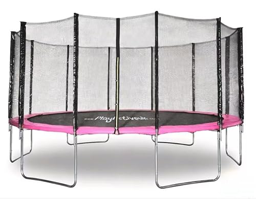 PlayActive 6ft / 8ft / 10ft / 12ft / 14ft / 16ft Kids Trampoline with Safety Enclosure Net, Ladder, Weatherproof Cover, Shoe Bag Included (Pink, 14ft)