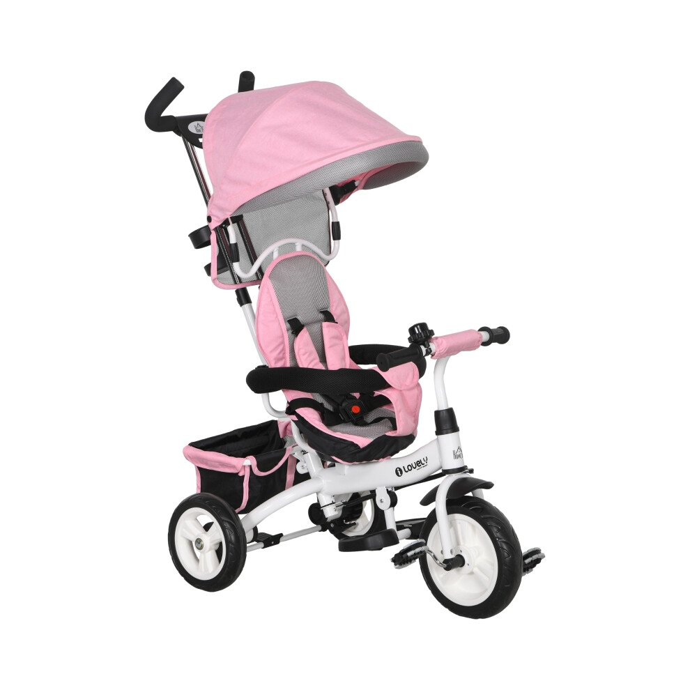 HOMCOM 6 in 1 Baby Trike for 1-5 Years, Toddler Tricycle Folding Bike with Parent Handle, Reversible Seat, Storage Basket, Canopy, 5-point Seat Harness, Pink