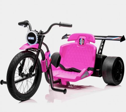 Outdoortoys Drift 24V Electric Ride on Trike┃Unique Trike design┃Drift function┃Hand Accelerator┃Adjustable Seat┃Front Light┃Rear slick drift wheels┃OutdoorToys┃3 Colour Options┃Pink┃