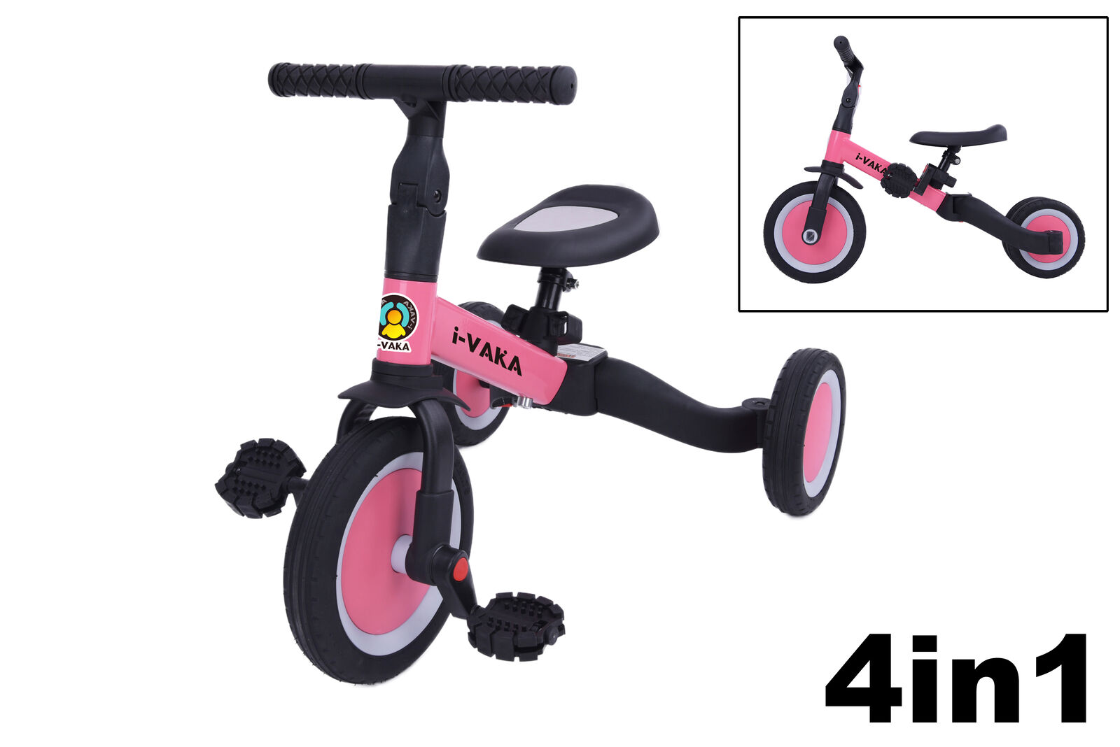 4in1 Childs BALANCE BIKE / TRIKE Converts - Pink - Toolless Conversion 1-5 Years