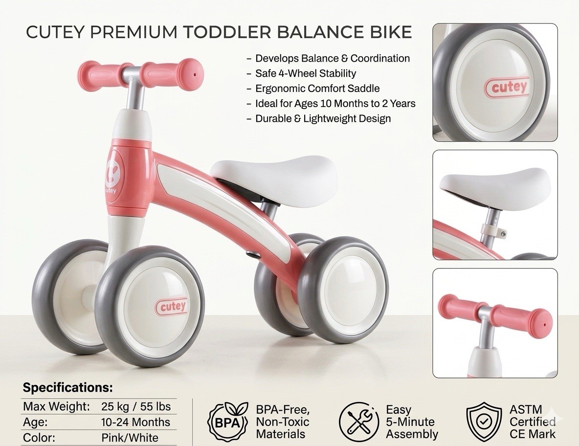 UBRAVOO Fit 'n Joy Beginner Toddler Training Bicycle, 4-in-1 Kids Balance Bike with Pedals & Training Wheels Options, Trike to Bike Riding Toys for Boys Girls 2-5 (Pink)