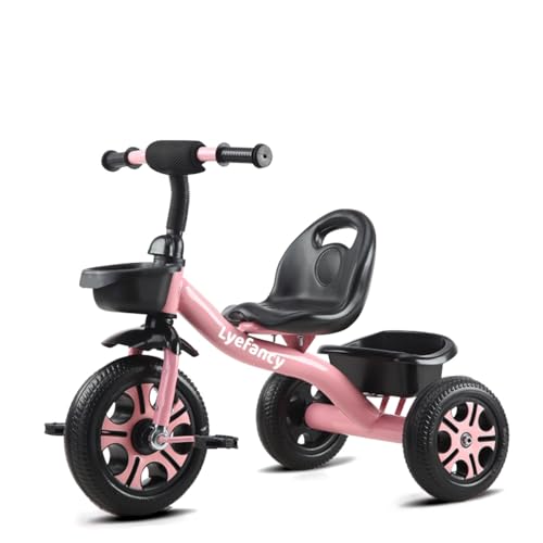 Lyefancy Kids Tricycle for 2-5 Years Old, Kids Trike with Basket and Removable Pedal, Toddler Tricycle 3 Wheel Bike Children Riding on Toys, Birthday for Boys Girls(Pink)