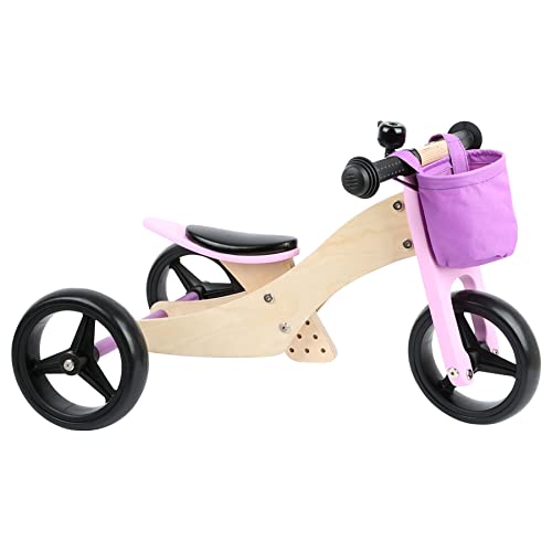 Small Foot 11612 Balance Trike 2-in-1 pink made of wood, tricycle and balance bike, adjustable seat and rubber-finished wheels