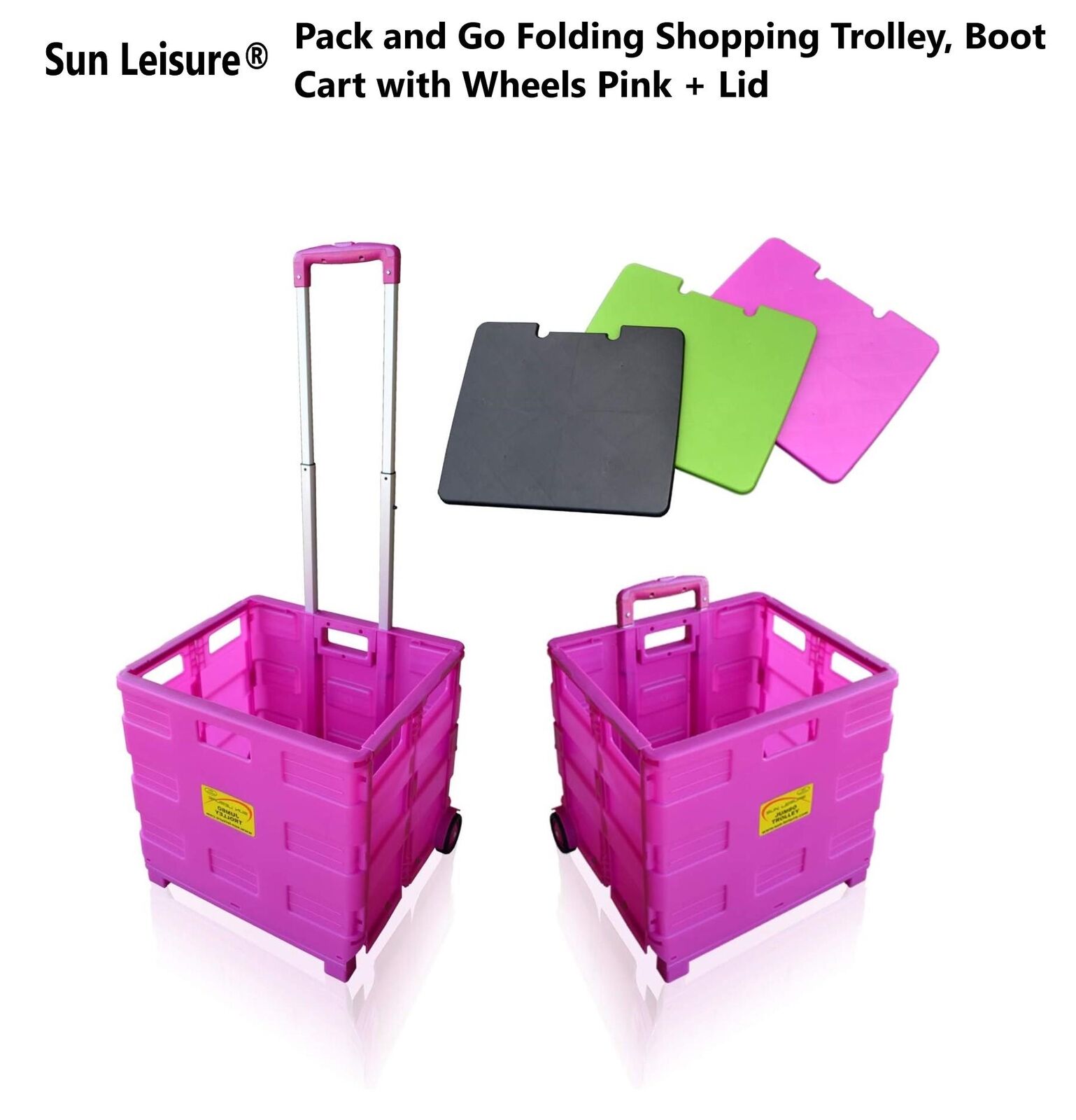Sun Leisure® Pack and Go Folding Shopping Trolley Cart with Wheels Pink + Lid