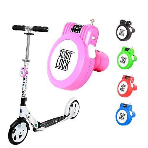 SCOOT LOCK® Portable Combination Scooter Lock New Reinforced Scooter Lock Steel Wire Chain Cable Micro Trunki Birdie Ozbozz EVO for Kids Children and Adults (Pink)