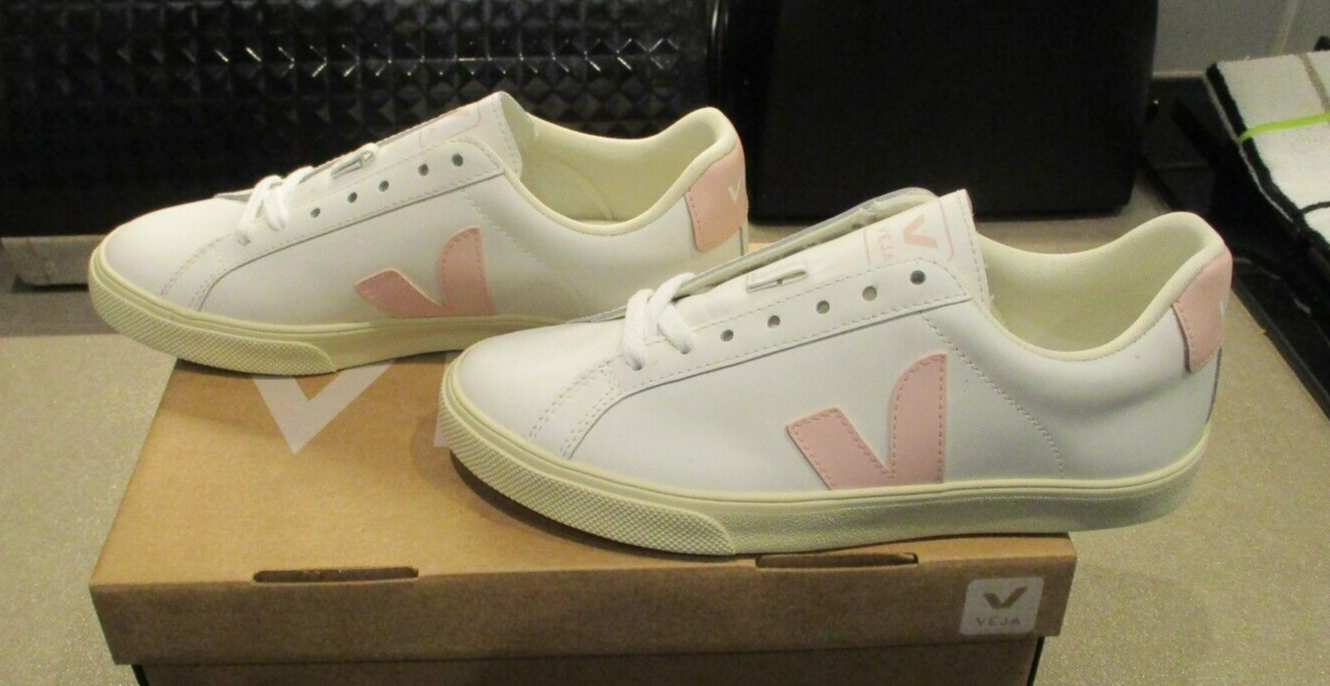 Veja Trainers Esplar Logo Leather Extra White Pink UK 5 Brand New In A Box