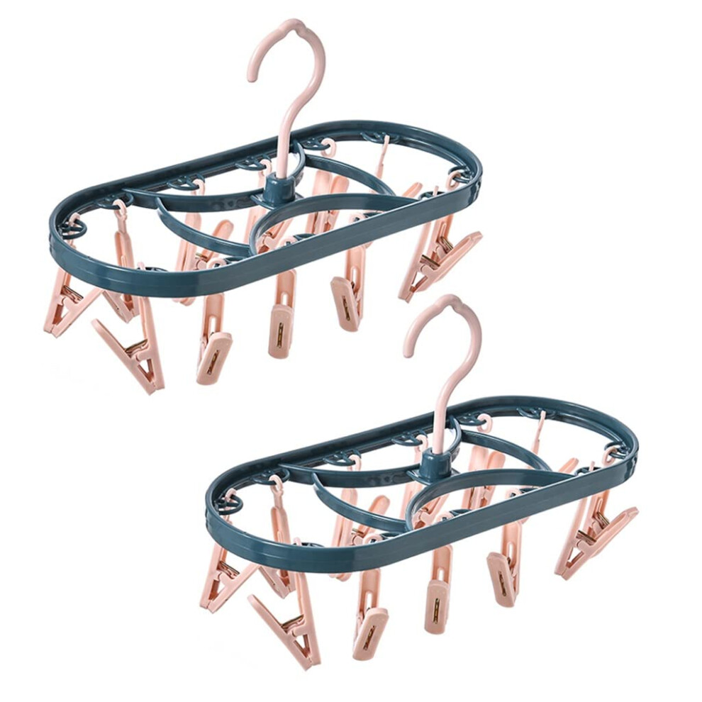 Durable Suit Hangers 2Pcs Drip Hanger With 12 Clips 360 Rotatable Hook Pink Socks Hanger Wardrobe Organisers