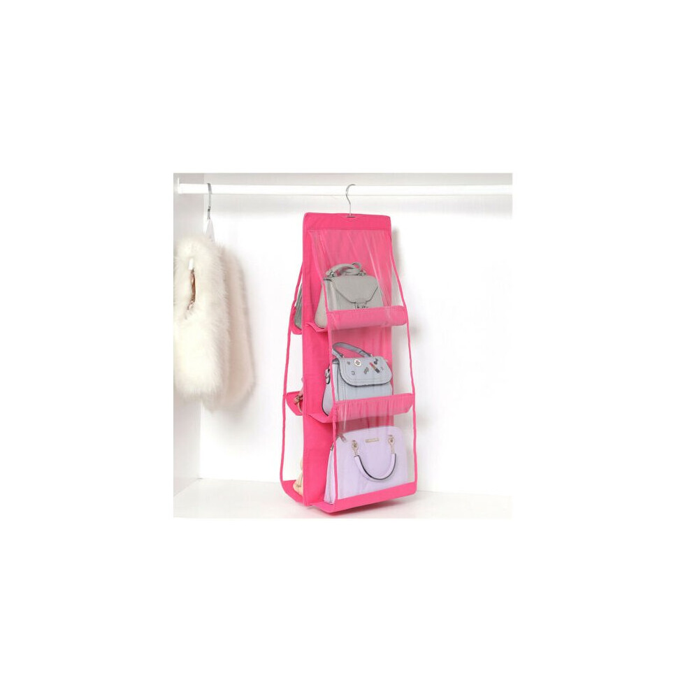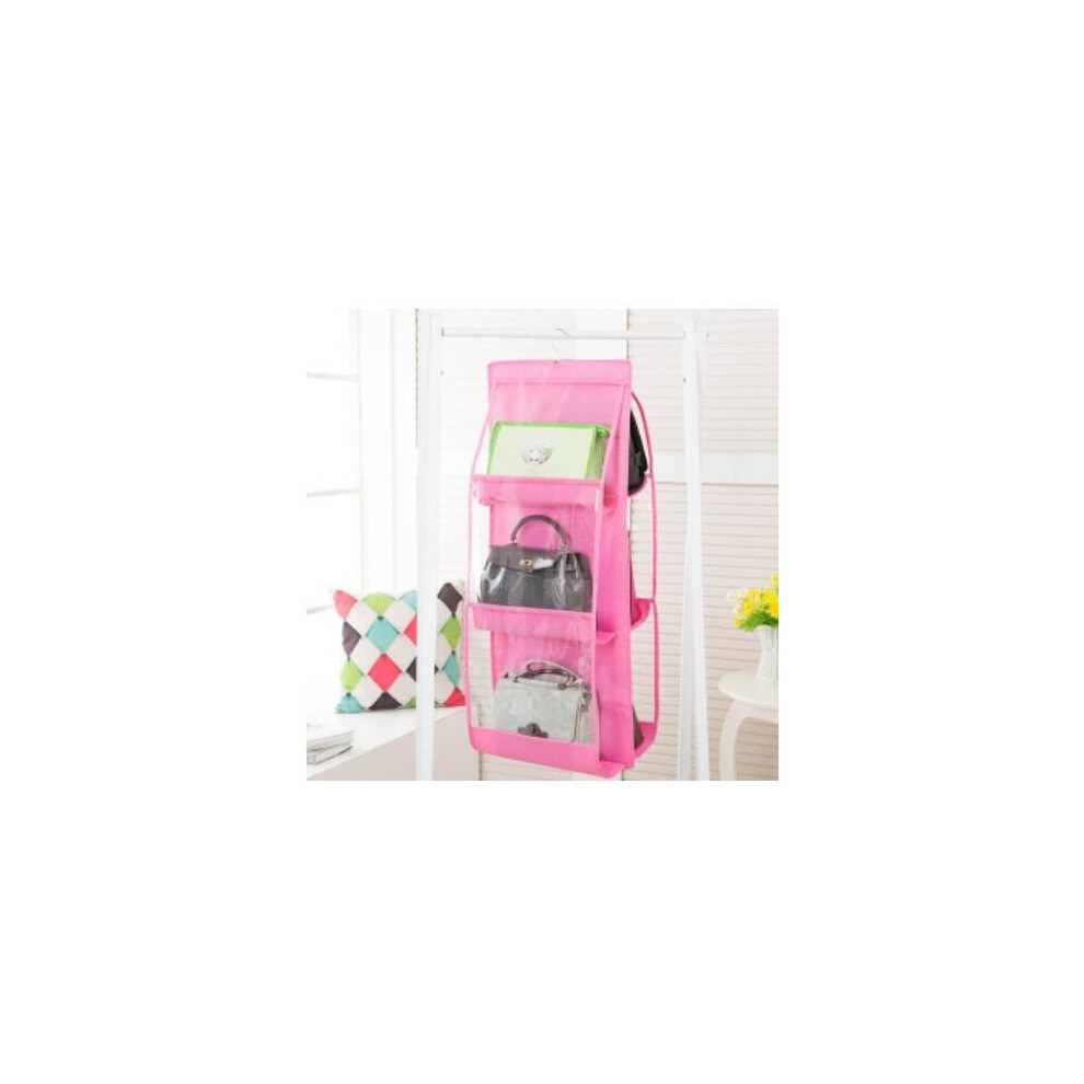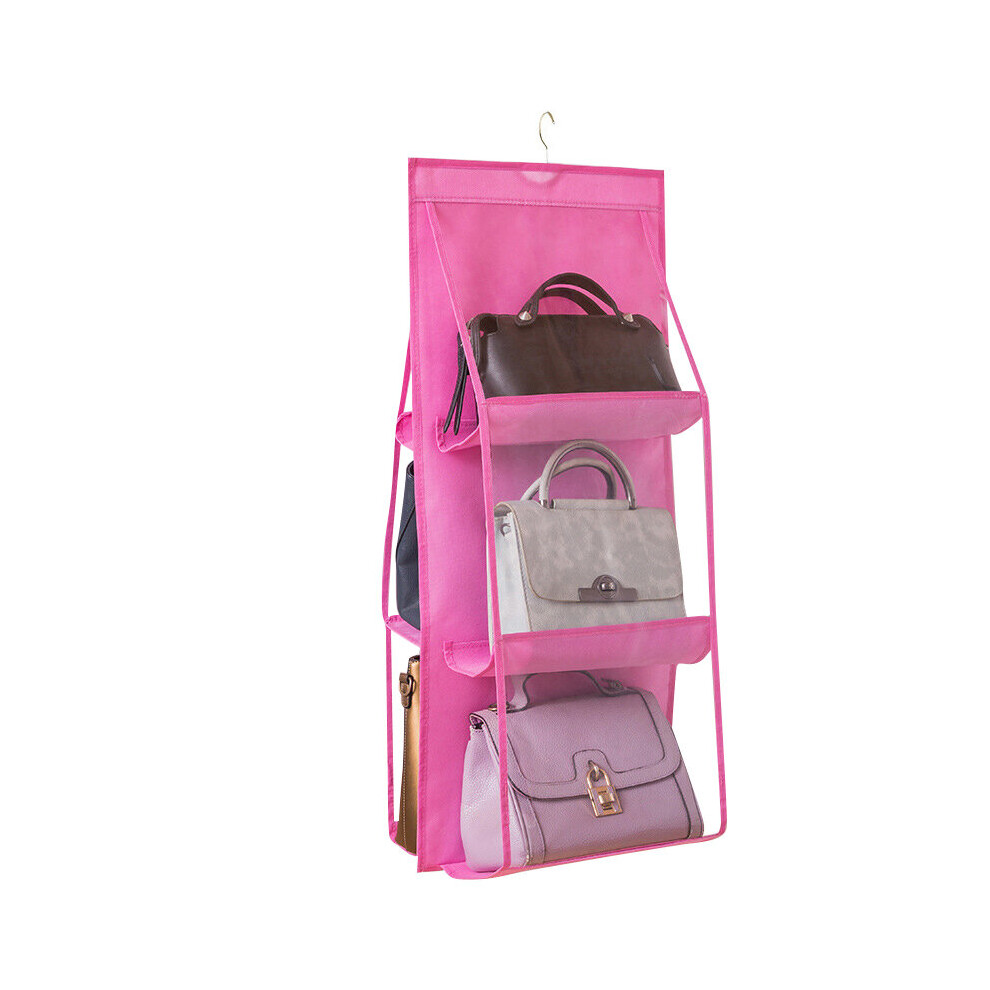 (a-6 Grids Pink) Wardrobe Closet Transparent Storage Bag Hanging Purse Handbag Organizer Storage Holder Door Wall Tote Bag Rack Hanger Pouch
