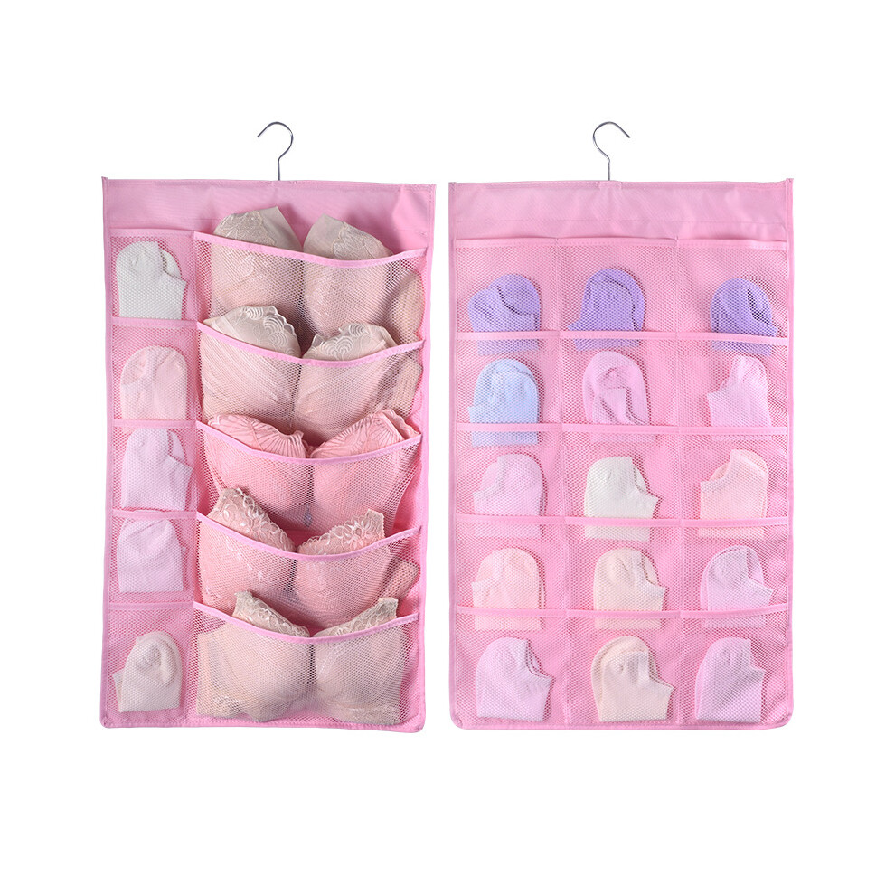 (Pink) 25 Pockets Wardrobe Bra Underwear Socks Storage Oxford Cloth Double-Sided Hanging Bag