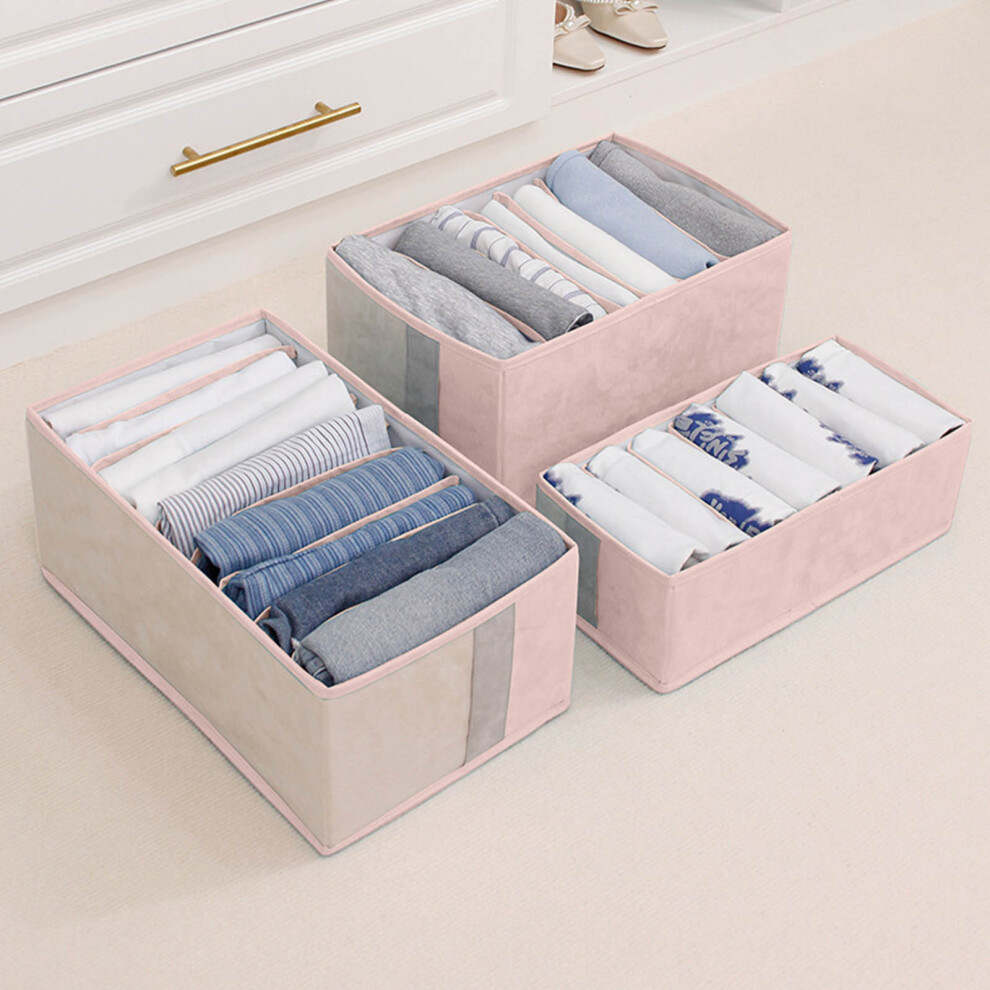(Pink) Multifunctional Wardrobe Organizer Visible Space-saving Multiple Compartments Storage 3PCS 7/7/9 Grids Washable Wardrobe Clothes Organizer Feat