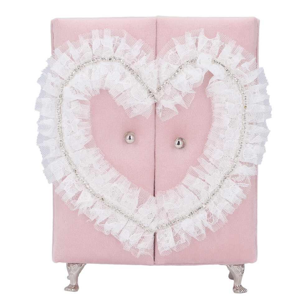 Dollhouse Miniature Wardrobe, Pink Lint Rhinestones Jewelry Box, Heart Shaped Lace Trim Mini Armoire with Cardboard Construction, Cute Dollhouse Furniture Accessory for Girls Kids