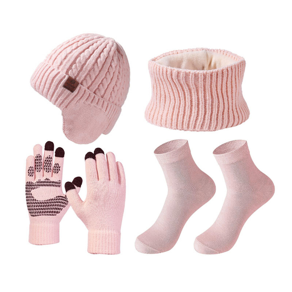 (pink) Winter Wardrobe With Velvet Warm Knitted Hat And Suit Set PU Warm Suit