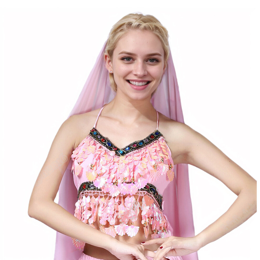 (Pink) Dance Wardrobe With Elegant Camisole Bra Paired Veil Indian Dance