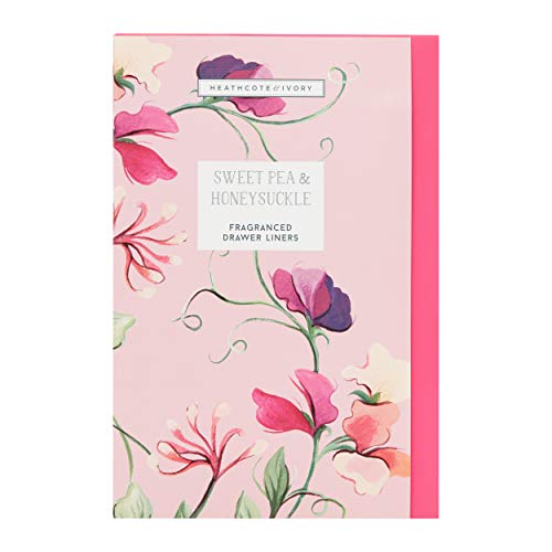 Heathcote & Ivory Fragranced Drawer Liners x5, For Wardrobes, Kitchen and Bedroom, Infused With Sweet Pea and Honeysuckle, Cruelty and Vegan Friendly, Gift For Home Lovers, Reusable Folder