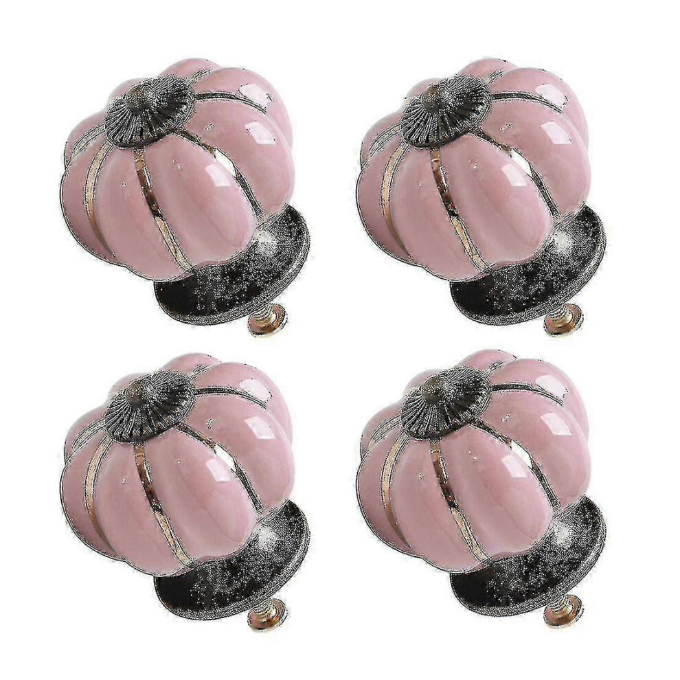 (As show, pink) Set of 4 Decorative Vintage Ceramic Knobs in Pumpkin Shape for Furniture, Doors, Cabinets, Cupboards, Wardrobes, and Dressers in Pink