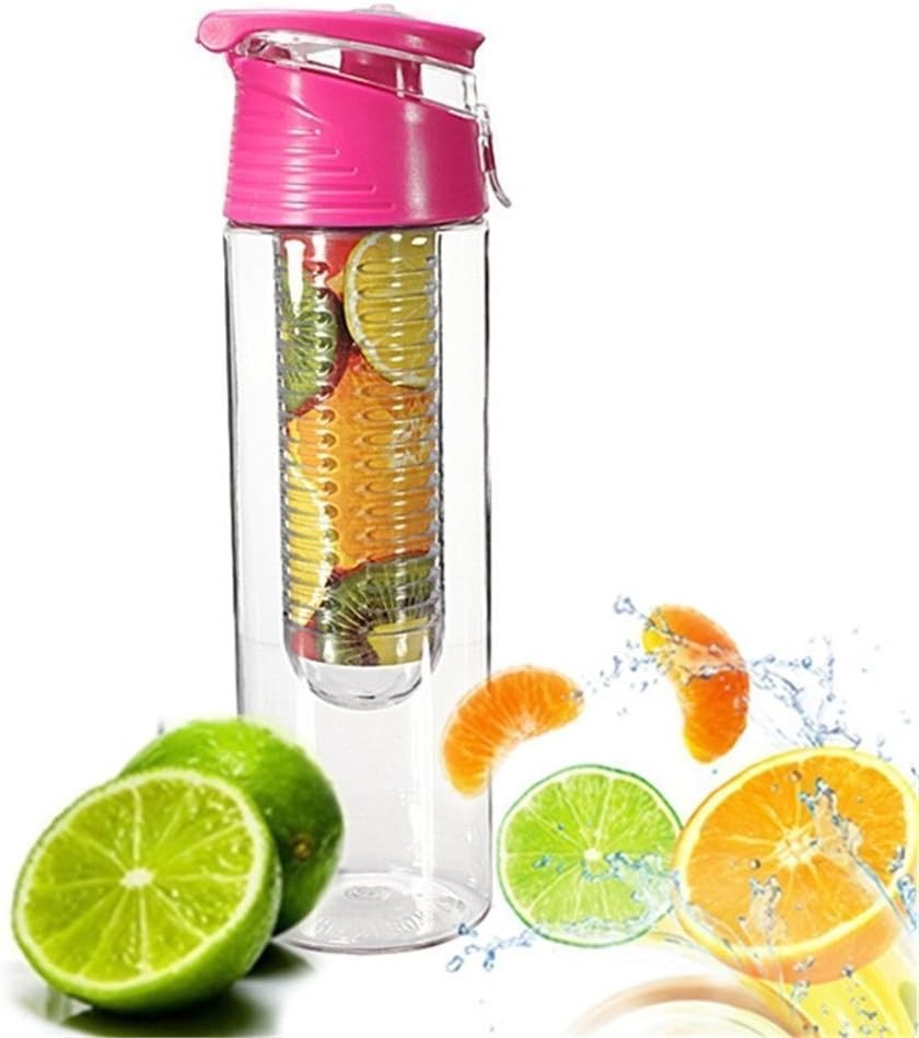 COCOSO Pink Fruit Infusing Water Bottle with Fruit Infuser and Flip Lid Lemon Juice Make Bottle- BPA Free (800 ml)
