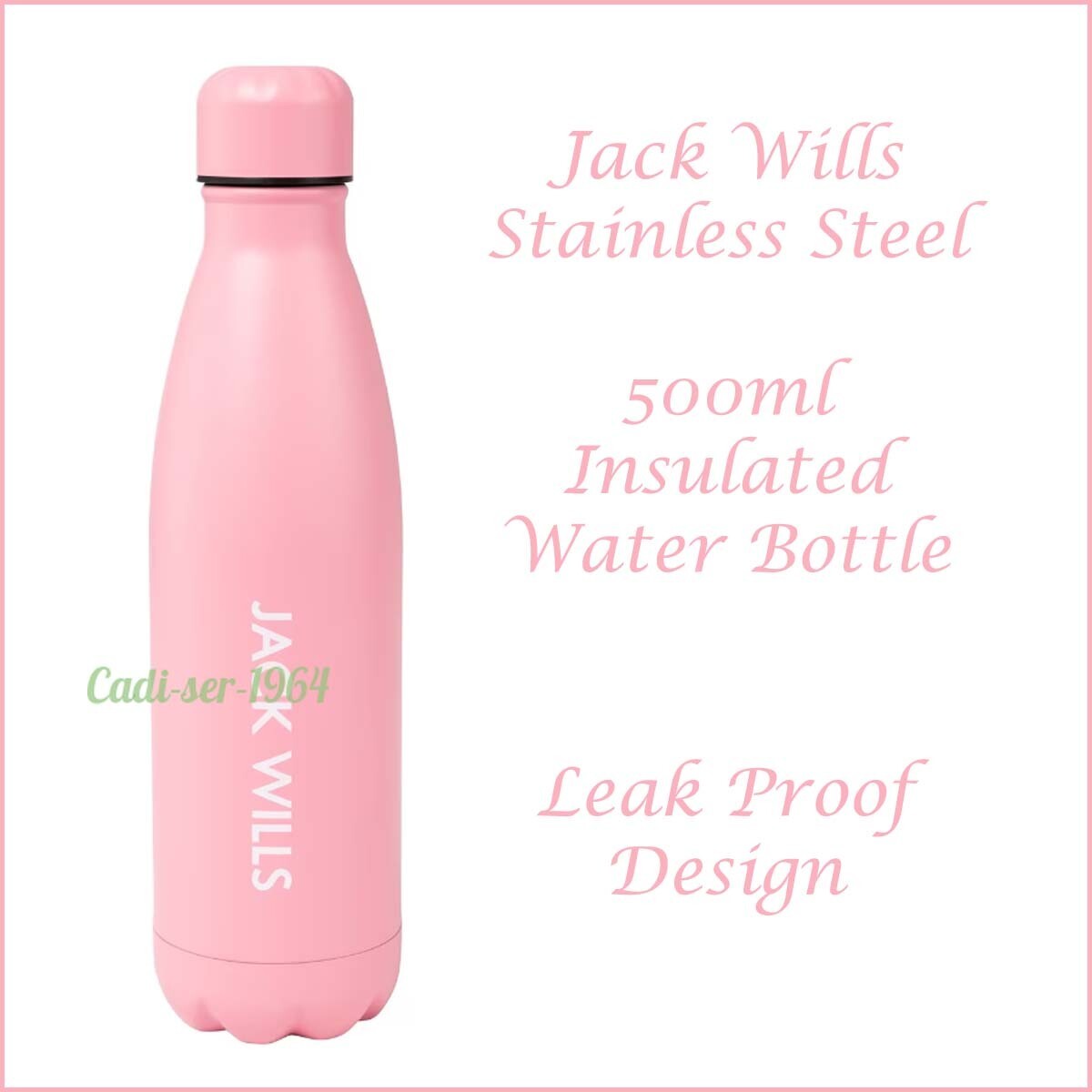 Jack Wills Pink Water Bottle 500ml Stainless Steel Reusable Water Bottle NEW