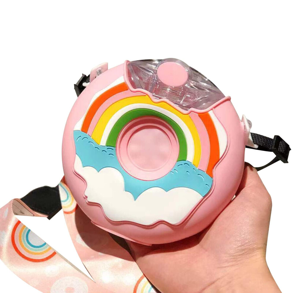 Cute Water Bottles Donut Water Bottle with Straw for Kids Sports Cup Kawaii Pink Water Bottle with Shoulder Strap for Outdoor Activities