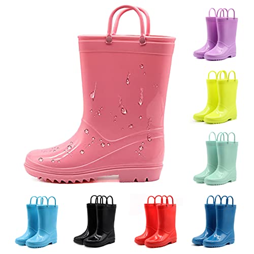 EUXTERPA Kids Wellies Boys Girls Waterproof Wellington Boots, Toddler Child Solid Pink Welly Boots for Outdoor Size 10