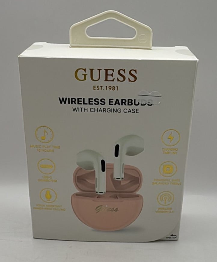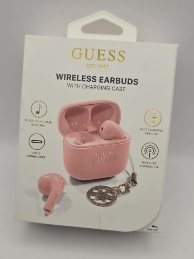 Guess Wireless Bluetooth Earbuds With Charging Case - Voice Assistant -Pink NEW.
