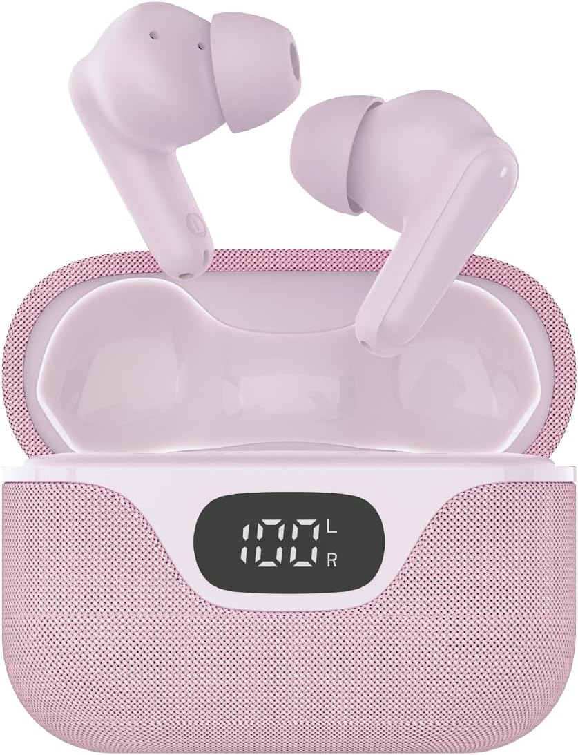 (Pink) Wireless Earbuds, 30Hrs Playback Stereo Ear Buds with LED Display Charging Case, Bluetooth 5.3 in-Ear Earphones with Mic for Phone Tablet Lapto