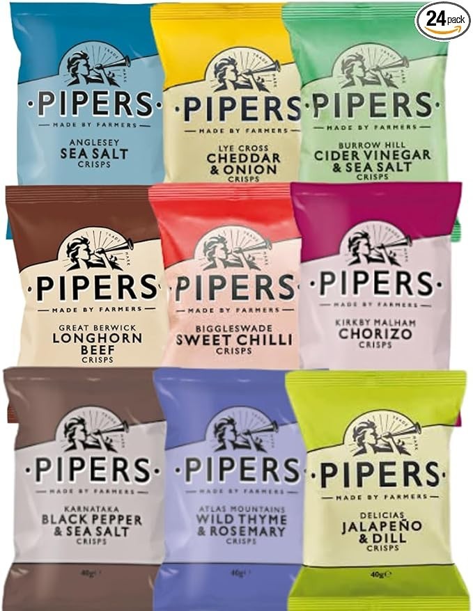 Pipers Crisps Custom 24x40g Pack Selection Choose any 3 Flavours Receive 8