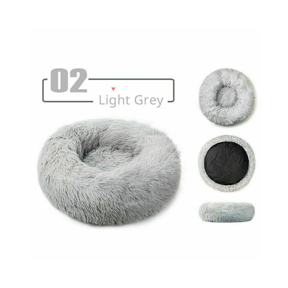 (Large 60CM) (Light Grey, M,L,XL) Washable Calming Comfy Donut Style Plush Cat Dog Pet Bed