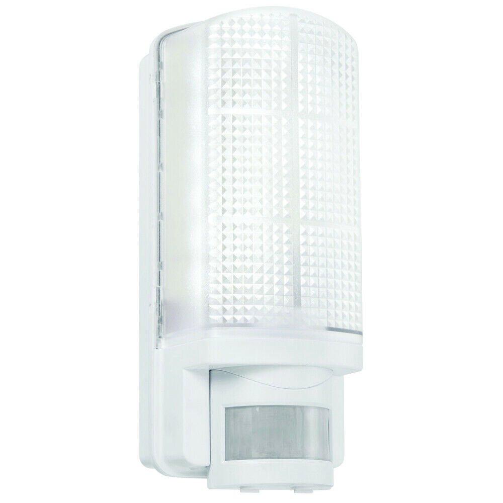 WHITE IP44 Outdoor Wall Bulkhead Light & 10m PIR Motion Sensor 6W Daylight LED