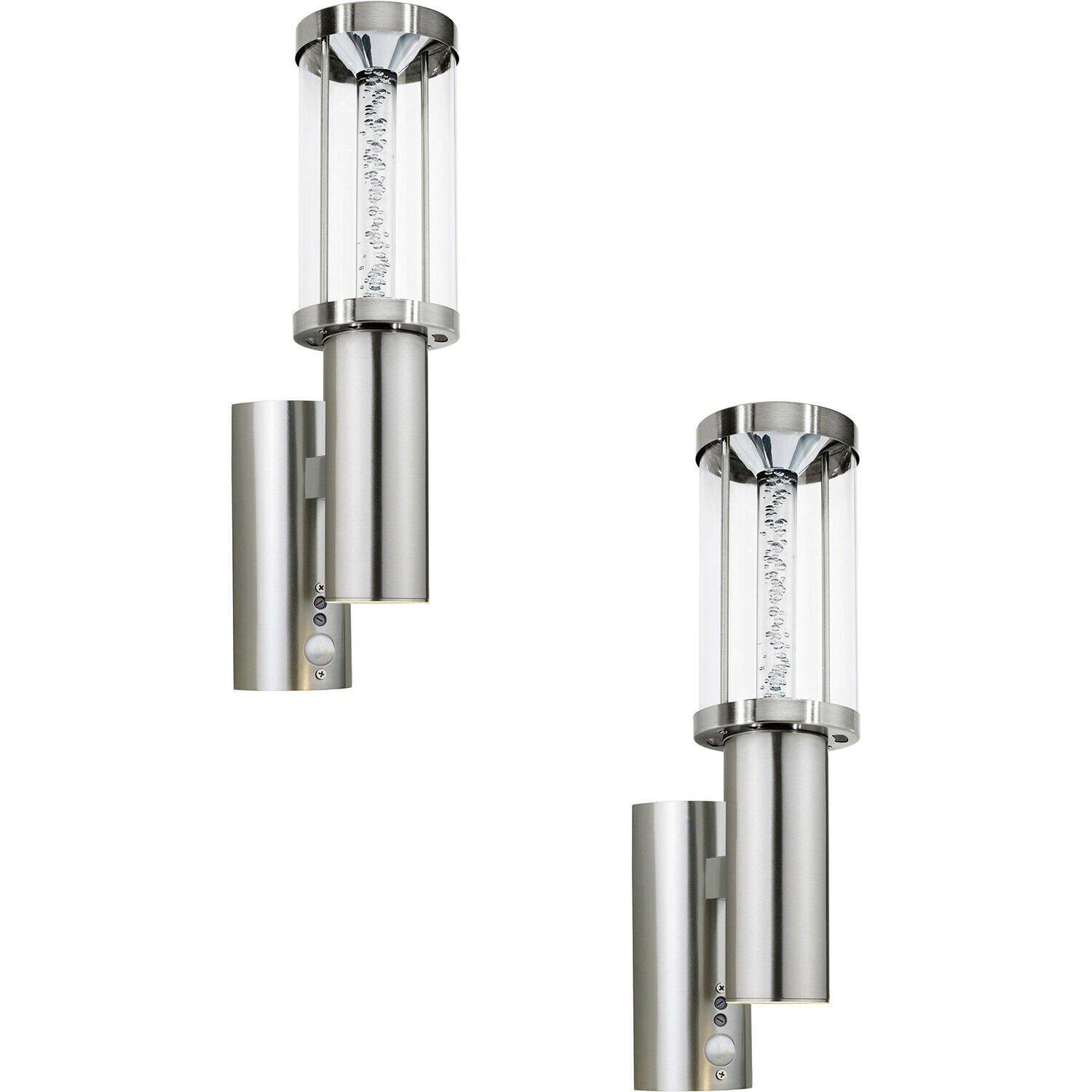 2 PACK IP44 Outdoor Wall Light & PIR Motion Sensor Stainless Steel 2x 3W GU10