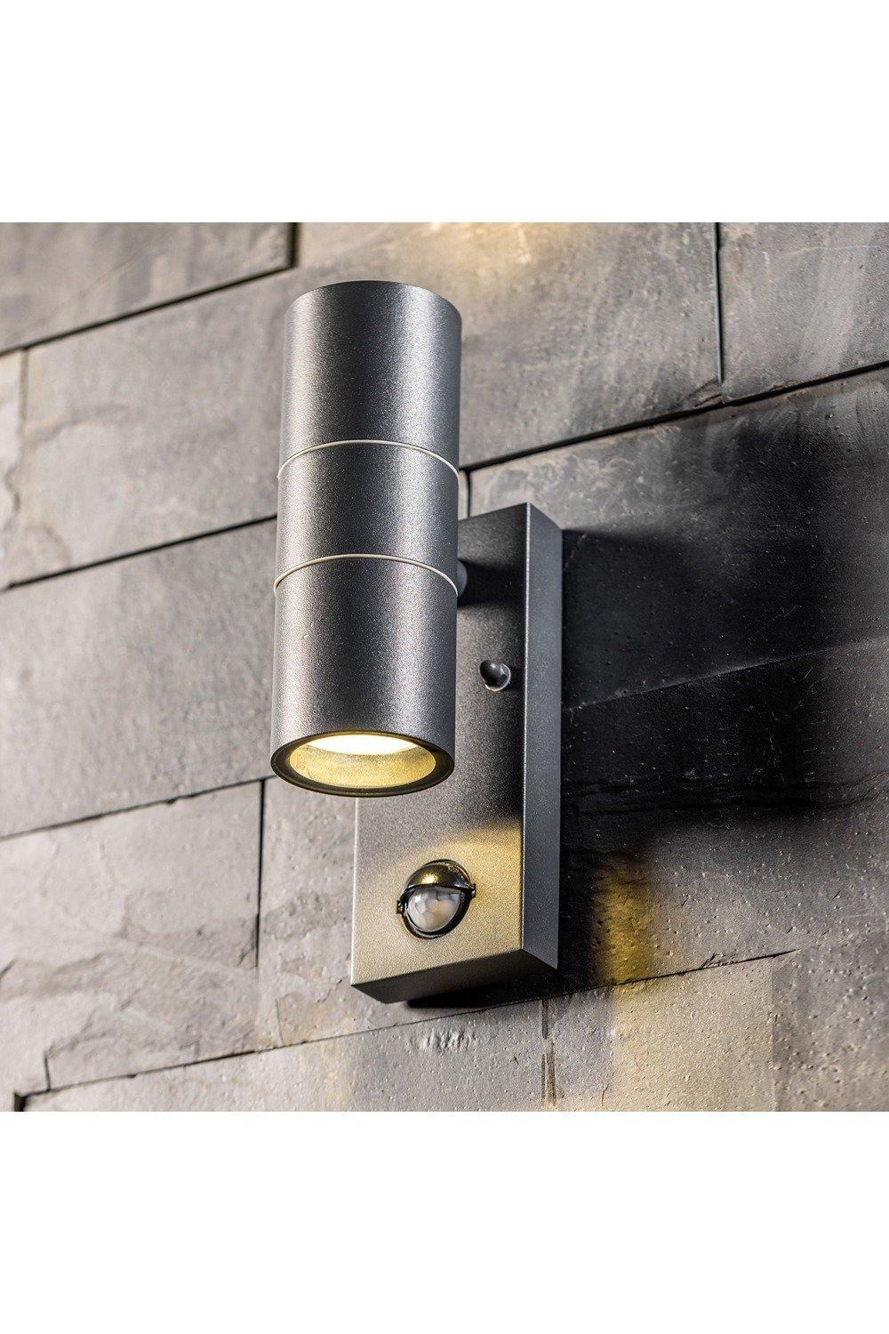 'Mia' Dark Grey Stainless Steel GU10 Up and Down Outdoor Wall Light IP44 with PIR Motion Sensor