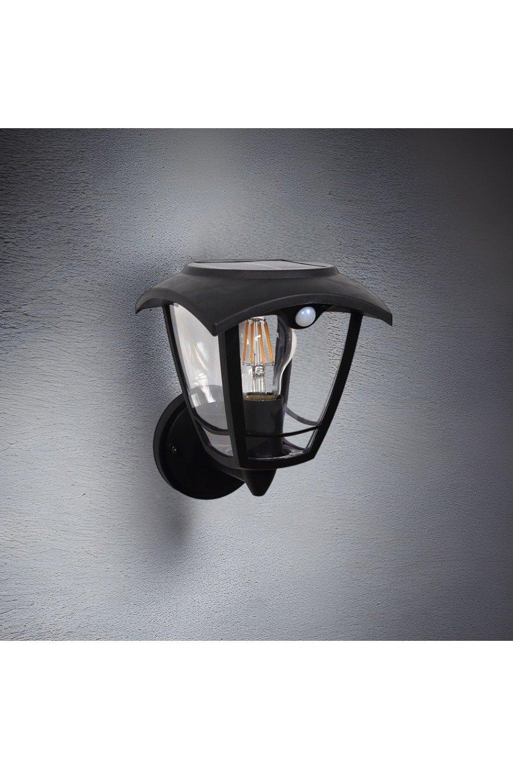 'Lara' Black Solar Outdoor Wall Lantern PIR Motion Sensor Traditional Filament LED