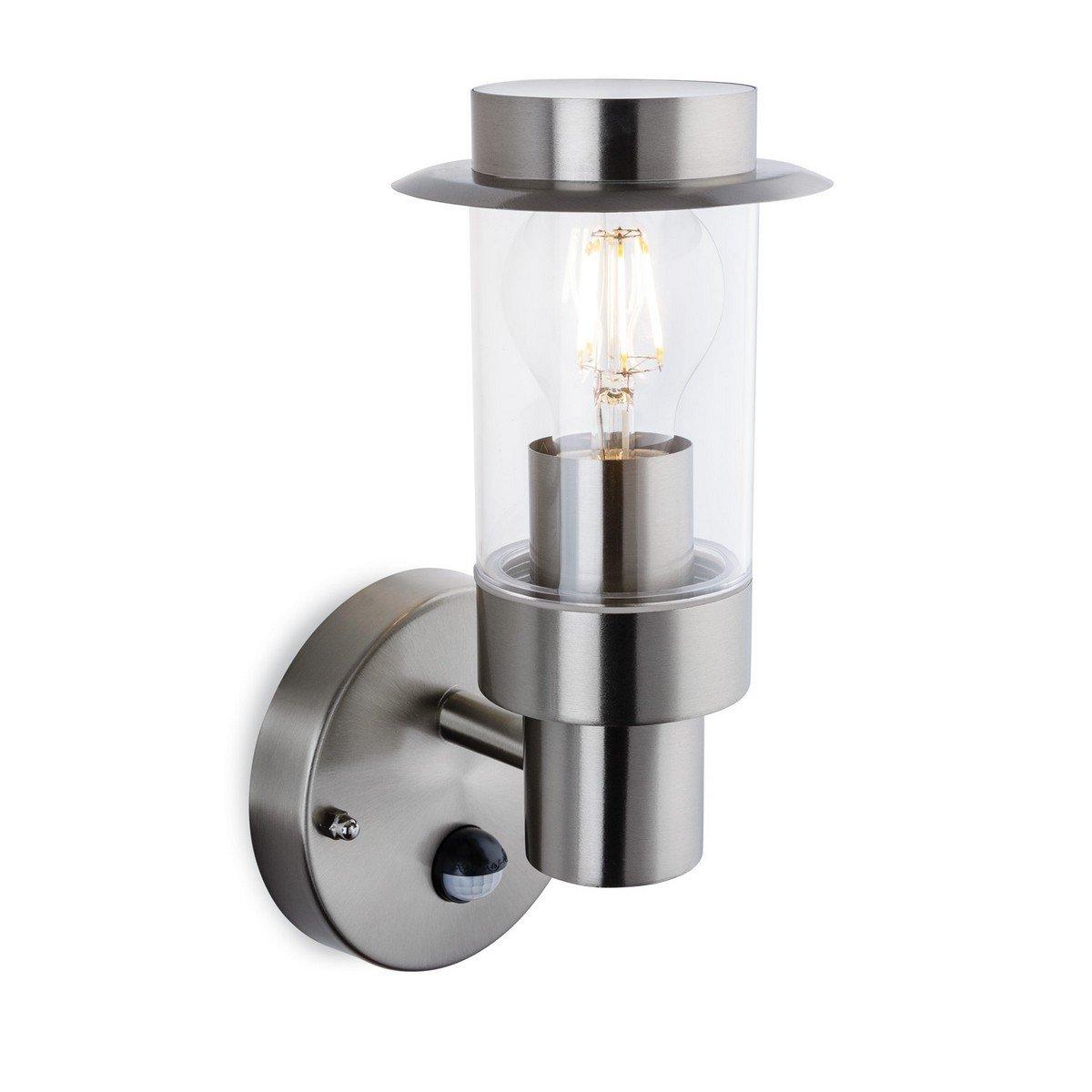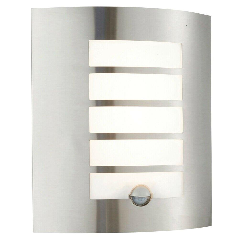 IP44 Outdoor Wall Light & PIR Motion Sensor Stainless Steel 1x 60W E27 Bulb